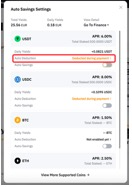 تمكين والكسب التلقائي سيستخدم تلقائياً الرصيد القابل للتحويل من أصول العملة الرقمية للدفع الخاصة بك (الظاهر تحت الدفع ب) في حساب التمويل للاشتراك في خطط مرنة في اليوم التالي.