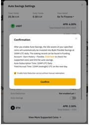 كما يمكنك كسب فائدة تراكمية على توفيرك المرن (غير متاح مباشرة على صفحة ادخارات Bybit) من خلال تفعيل الخصم التلقائي على لوحة تحكم بطاقة Bybit!