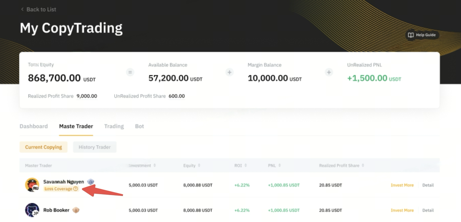 - إذا كنت مؤهلاً للتعويض عن الخسائر، سيتم منح تعويض يصل إلى 100 USDT في شكل مكافأة نسخ التداول وسيتم توزيعها إلى مركز المكافآت خلال 3 أيام بعد حدوث خسائرك.