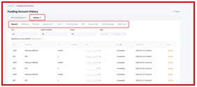 يرجى ملاحظة أن تبويب جميع المعاملات يمكنه عرض سجلاتك فقط في إطار زمني يبلغ 90 يومًا. إذا كنت ترغب في عرض المعاملات القديمة، يرجى التوجه إلى علامة التبويب التاريخ.