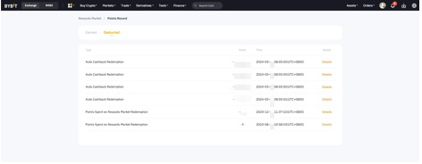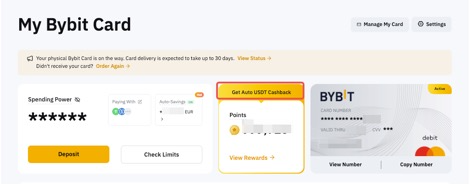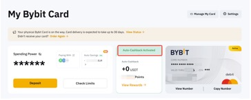الخطوة 4: بعد تفعيل الاسترداد النقدي التلقائي بنجاح، ستلاحظ أن نقاط Bybit قد تم تفعيلها للاسترداد النقدي التلقائي على لوحة التحكم لبطاقة Bybit. سيتم تحويل النقاط إلى الرمز المحدد وإضافتها إلى حساب التمويل الخاص بك كل يوم بين 00:00 و 01:00 بالتوقيت العالمي المنسق.