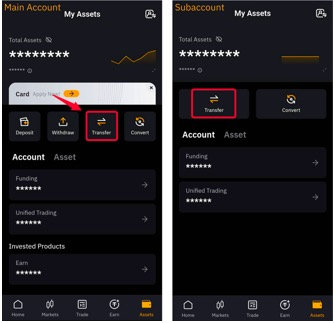— تم تسجيل الدخول إلى حسابك الفرعي من خلال صفحة تسجيل الدخول باستخدام اسم المستخدم وكلمة المرور الخاصة بك في Bybit. في هذه الحالات، سيتم دعم التحويلات فقط إلى الحساب الرئيسي أو داخل نفس الحساب الفرعي.