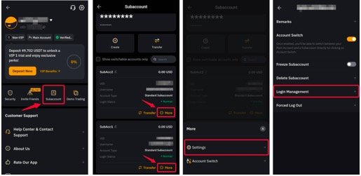 c. لتأمين الوصول إلى حسابك الفرعي، يمكنك تمكين ميزة طلب كلمة مرور لتسجيل الدخول وملء اسم المستخدم و كلمة المرور لحسابك الفرعي الجديد مباشرةً. سيتم استخدام اسم المستخدم للحساب الفرعي على المنصة لتحديد حسابك الفرعي ولتسجيل الدخول. لاحظ أن اسم المستخدم لا يمكن تغييره بعد إنشاء الحساب الفرعي.