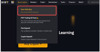 الخطوة 1: قم بتسجيل الدخول إلى حساب Bybit الخاص بك واضغط على شراء العملات المشفرة على شريط التنقل في موقع Bybit، ثم اختر الشراء بنقرة واحدة.