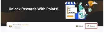 انقر على أيقونة السجلات في صفحة سوق المكافآت. يمكنك عرض النقاط المكتسبة والمخصومة عن طريق التبديل بين العلامات التبويب على صفحة سجل النقاط.