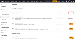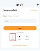 ومع ذلك، إذا قمت بتسجيل حساب Bybit الخاص بك في البداية باستخدام حساب Google الخاصة بك، يمكنك تسجيل الدخول مباشرةً بالنقر على أيقونة Google في صفحة تسجيل الدخول. بعد ذلك، انقر على أيقونة الملف الشخصي ← الأمان ← تغيير كلمة المرور لإعادة تعيين كلمة المرور الخاصة بك.