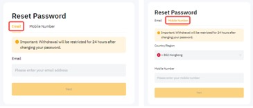 قبل إعادة تعيين كلمة المرور الخاصة بك، يرجى ملاحظة أن الميزات التالية ستكون محظورة لمدة 24 ساعة بعد تعديل كلمة مرور تسجيل الدخول الخاصة بك: