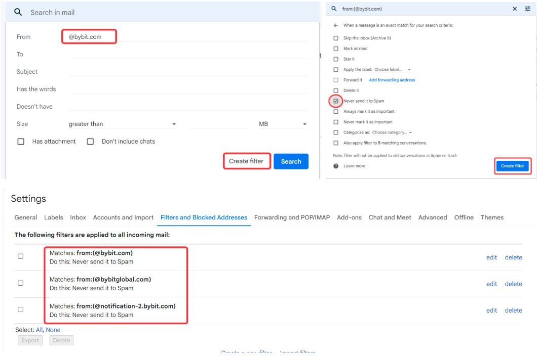 Step 2: Whitelist our Bybit email addresses to ensure a successful receiving of the email. To obtain the list of email addresses, please click here.