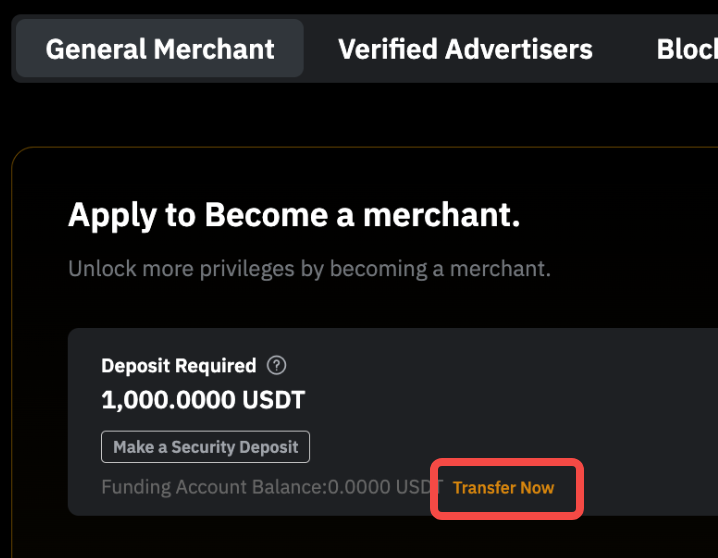 5. For a General Advertiser, the required security deposit is 200 USDT. For higher-level advertiser types (e.g., Verified Advertiser or Block Advertiser), the necessary deposit is 1,000 USDT.