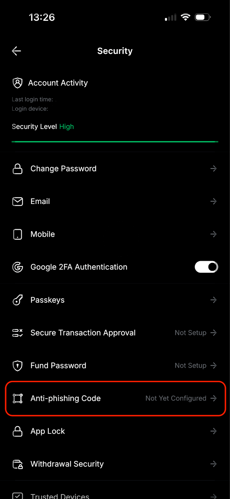 To prevent phishing attempts, Bybit strongly suggests setting up the Anti-phishing Code via the website or the App. If you have not set up your Anti-Phishing Code, please go to your Account & Security page and follow this guide to get started.