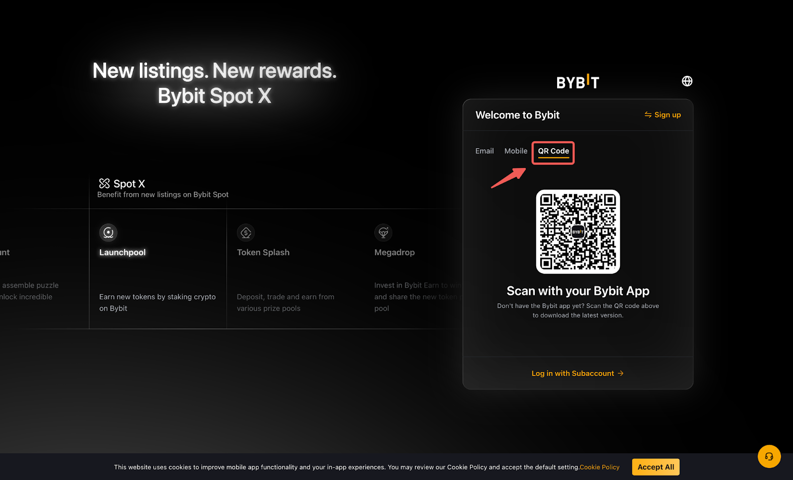 Step 1: Please head to the login page on the Bybit website and select the QR Code tab to get started.