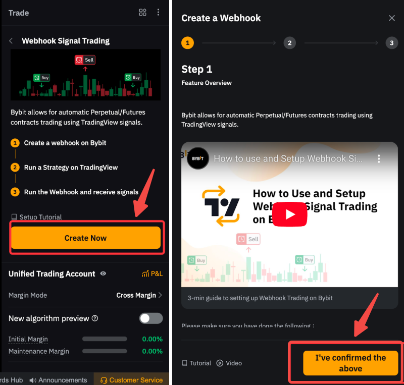 Step 2: Click on Create Now. Please make sure you understand the overview of this function. For more information about how to run webhook signal trading, consider watching the tutorial video provided and click on I’ve confirmed the above.