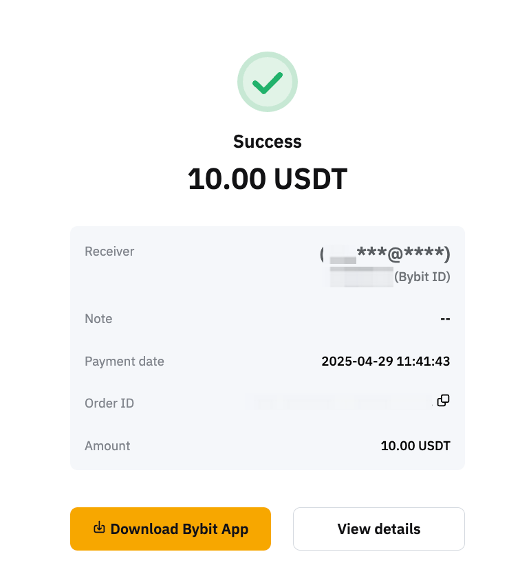 Este artículo sirve como guía para realizar un pago con transferencia interna utilizando Bybit Pay. Para consultar las guías de los otros métodos de pago, visite las siguientes páginas: