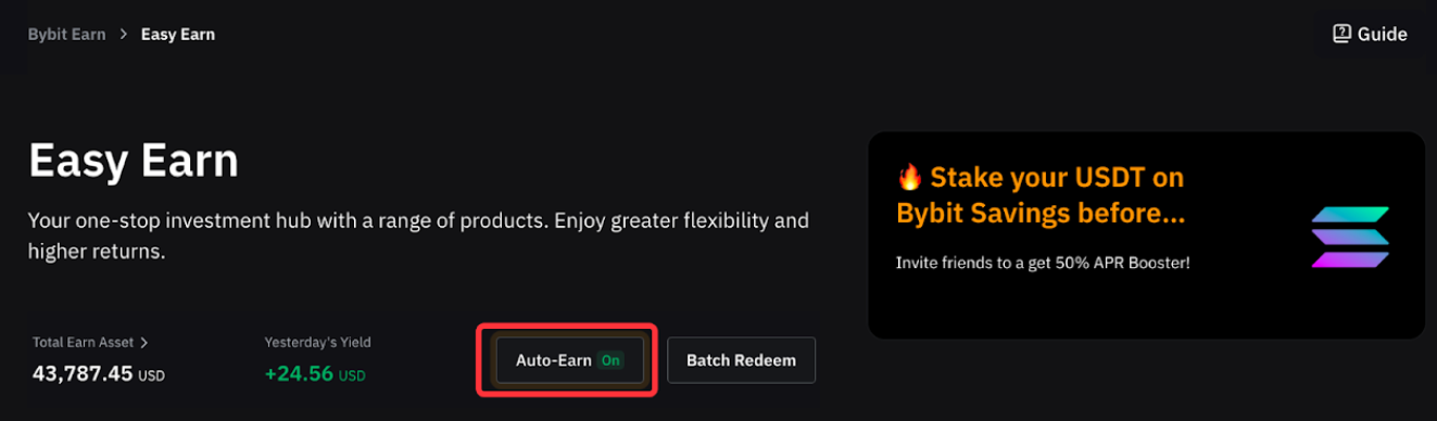 Paso 1: Ve a la página de inicio de Easy Earn y haz clic en Auto-Earn.