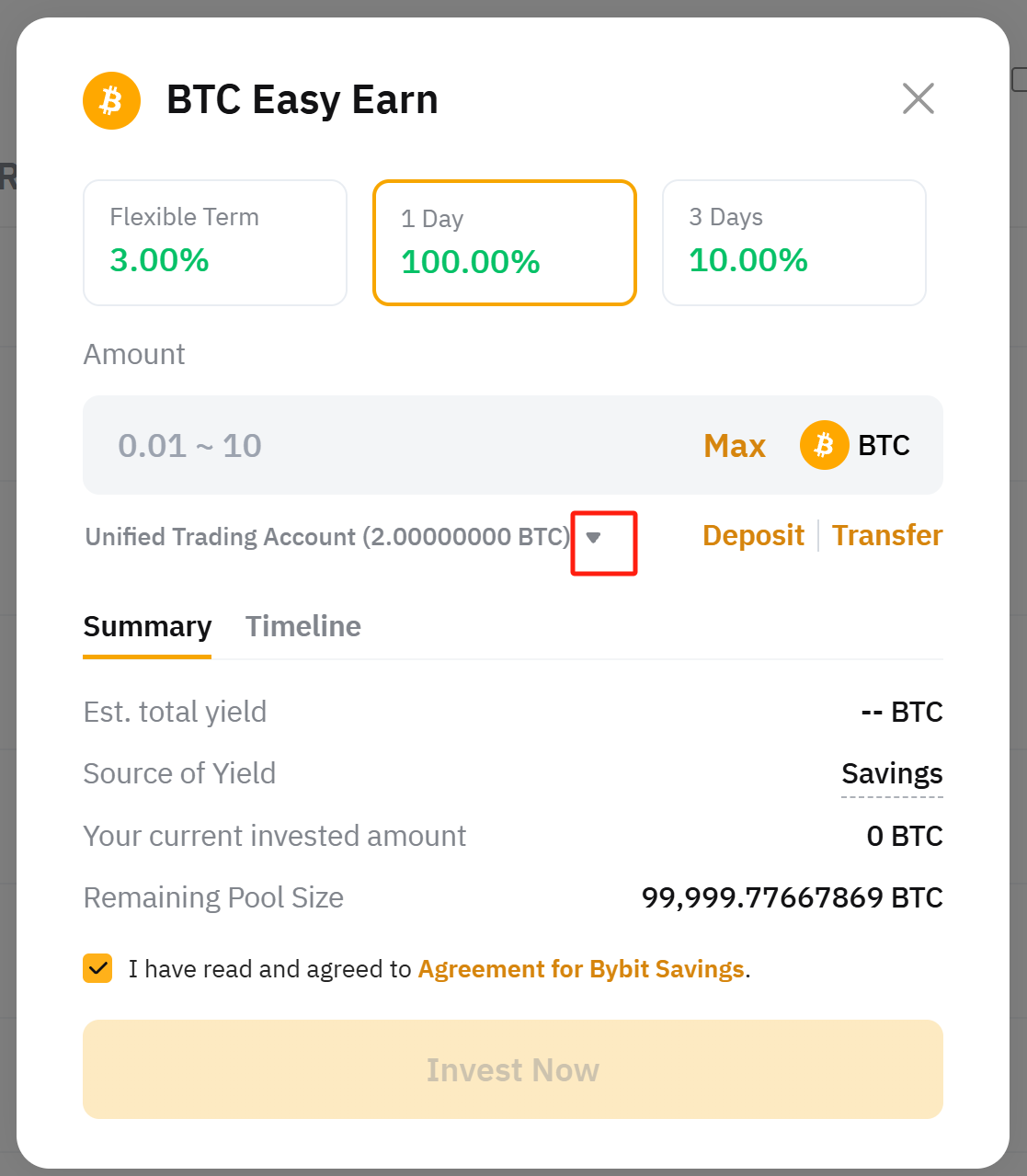 Dependiendo del producto, es posible que puedas cambiar entre tu cuenta de financiación y tu cuenta de trading unificada para la inversión. Además, puedes consultar el origen del rendimiento: