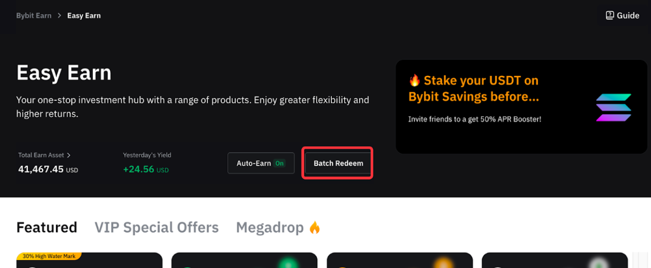 La función Canjear por lotes también está disponible en la página de inicio de Easy Earn.