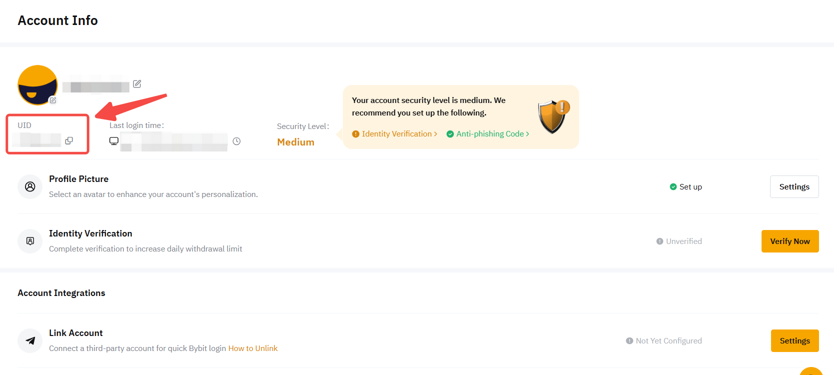 URL de la cuenta del usuario de la mainnet (red principal): https://www.bybit.com/app/user/account-info
