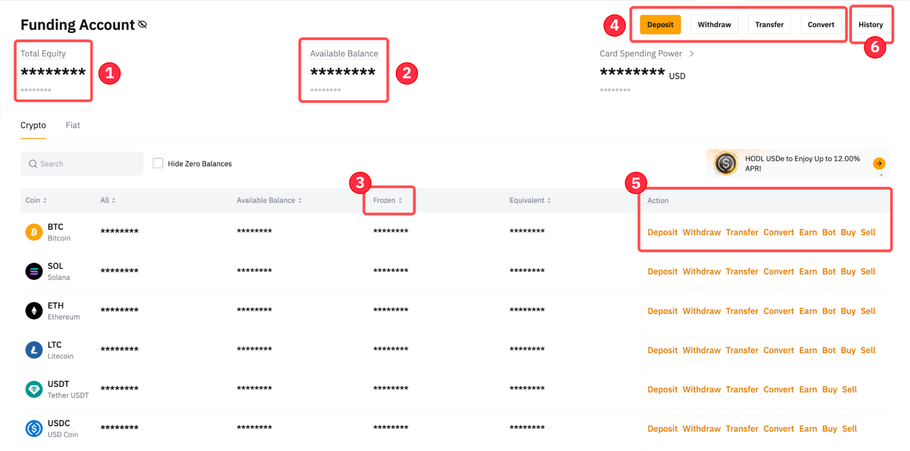6. For Crypto Loans, users can use their funds in the Funding Account to borrow funds, repay their borrowing, or adjust the collateral amount.