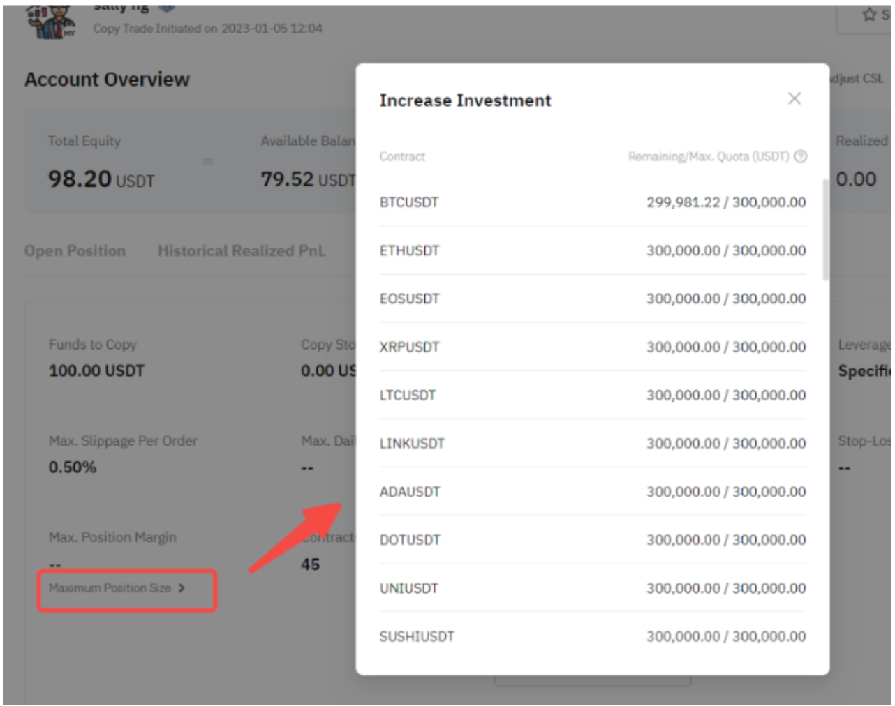 最大ポジション価格とは、コピートレードで使用できる最大注文額を指します。この価格はロングとショートの両方のポジション価格から算出されます。