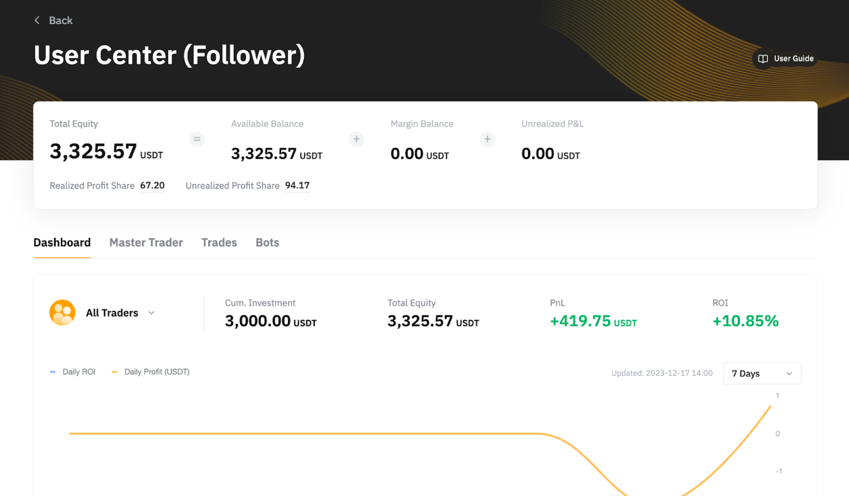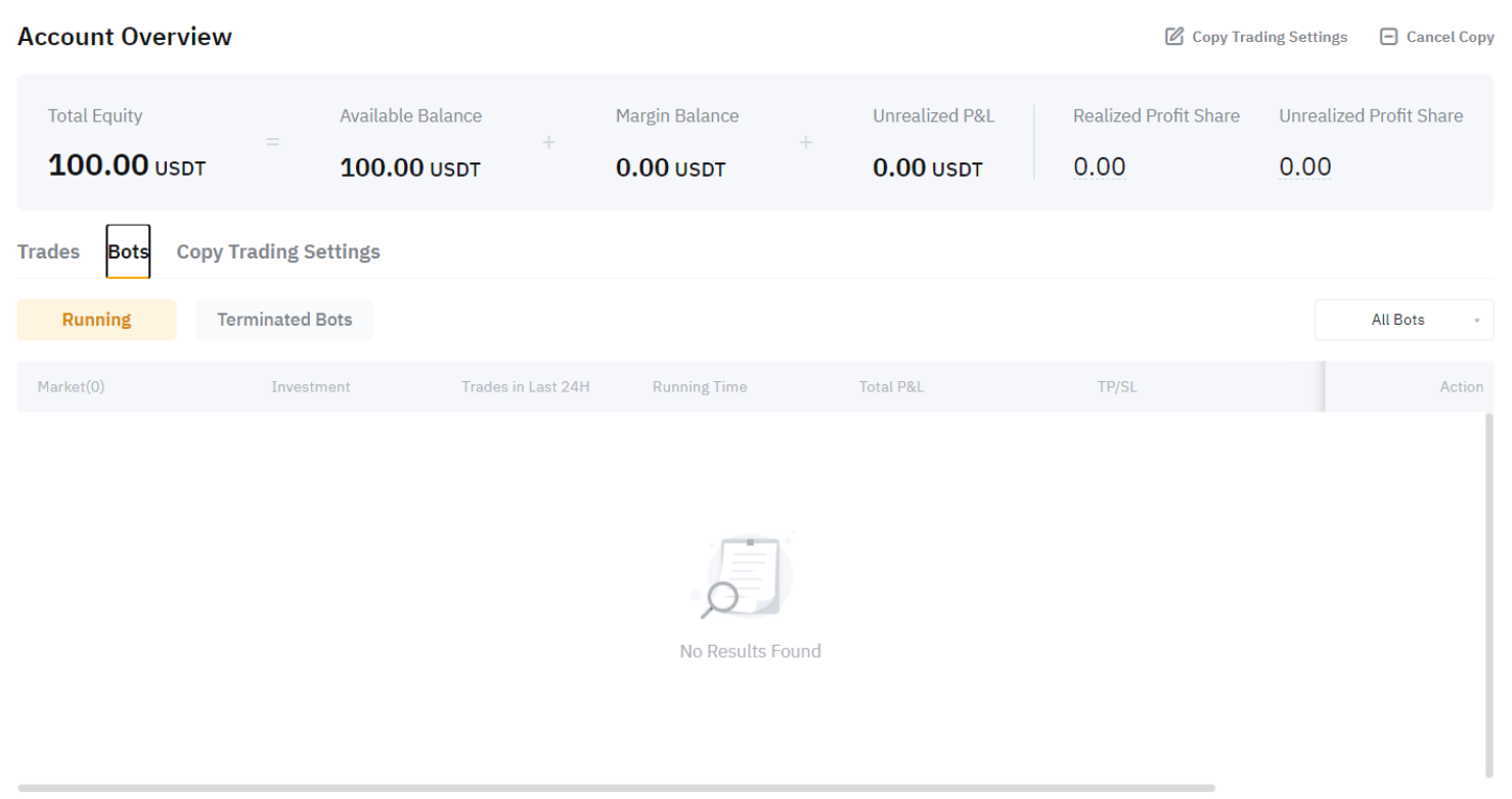 USDT無期限取引とコピートレードで作成された取引ボットの両方のパフォーマンスが考慮されます。取引ボットについては、現在、デリバティブ取引ボットのみがサポートされています。