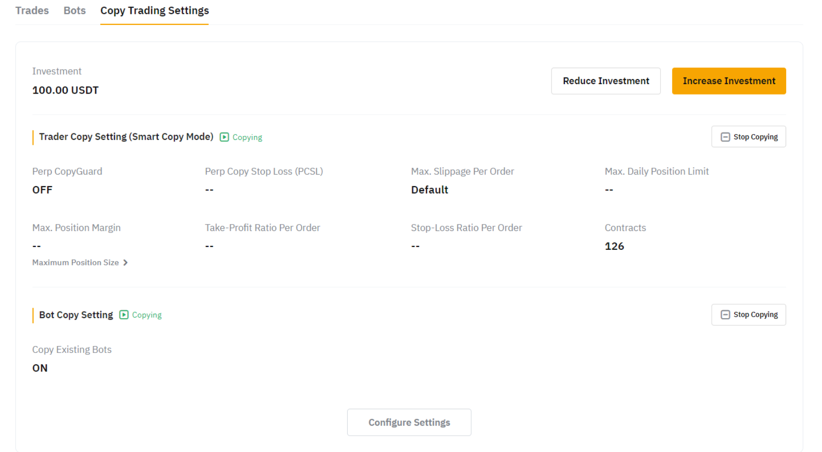 マスタートレーダーのコピーをキャンセルした後、お客様のボットは終了し、全ての未決済ポジションは決済され、残金はお客様の資金調達アカウントに返金されますのでご注意ください。