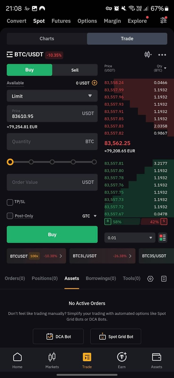 In the Spot Market, various types of orders are supported. These include: Market Order, Limit Order, Conditional Orde, and TP/SL Order. For more detailed information about these order types, please visit this article.