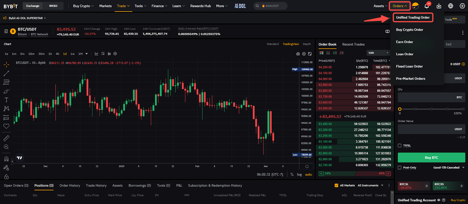 On the Bybit website, please click on Orders → Unified Trading Order to view your order history.
