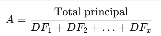 A = Total principal ÷ (DF₁ + DF₂ + … + DFₓ)