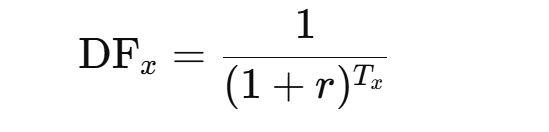 • DFₓ is the discount factor for installment x.