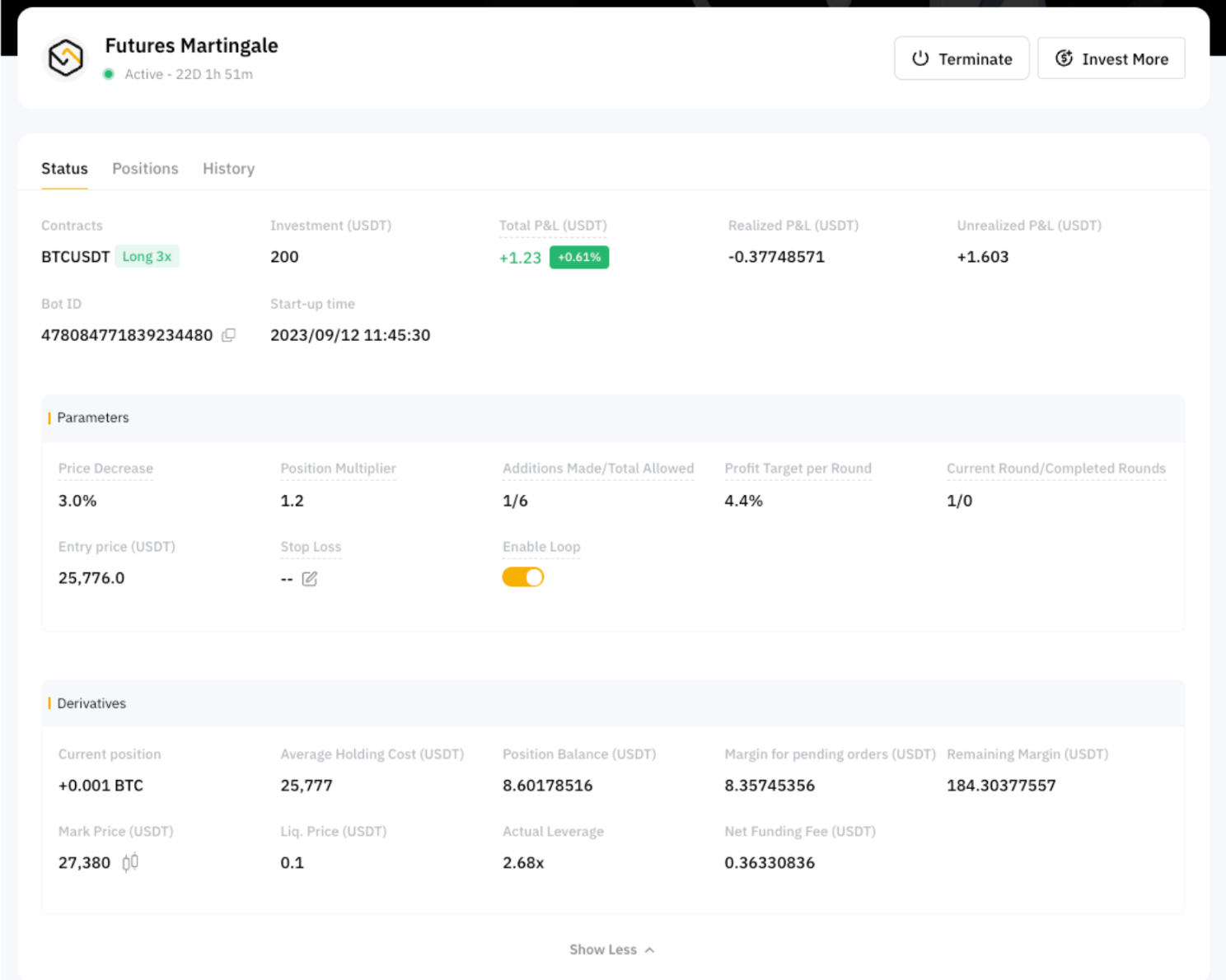 O robô de Martingale de futuros da Bybit foi construído sobre os princípios fundamentais da estratégia Martingale tradicional. O robô envia automaticamente uma ordem adicional quando o preço de mercado passa por um aumento ou diminuição do percentual específico. Para criar um robô de Martingale de futuros, você terá que estabelecer certos parâmetros que definem sua estratégia de trading para que o robô seja executado. Neste artigo, ajudamos você a navegar pelos parâmetros ao criar um robô de Martingale de futuros.