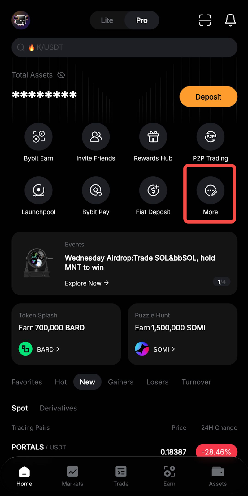 Etapa 1: Na página inicial do Bybit, toque no ícone Scanner para abrir o scanner QR.