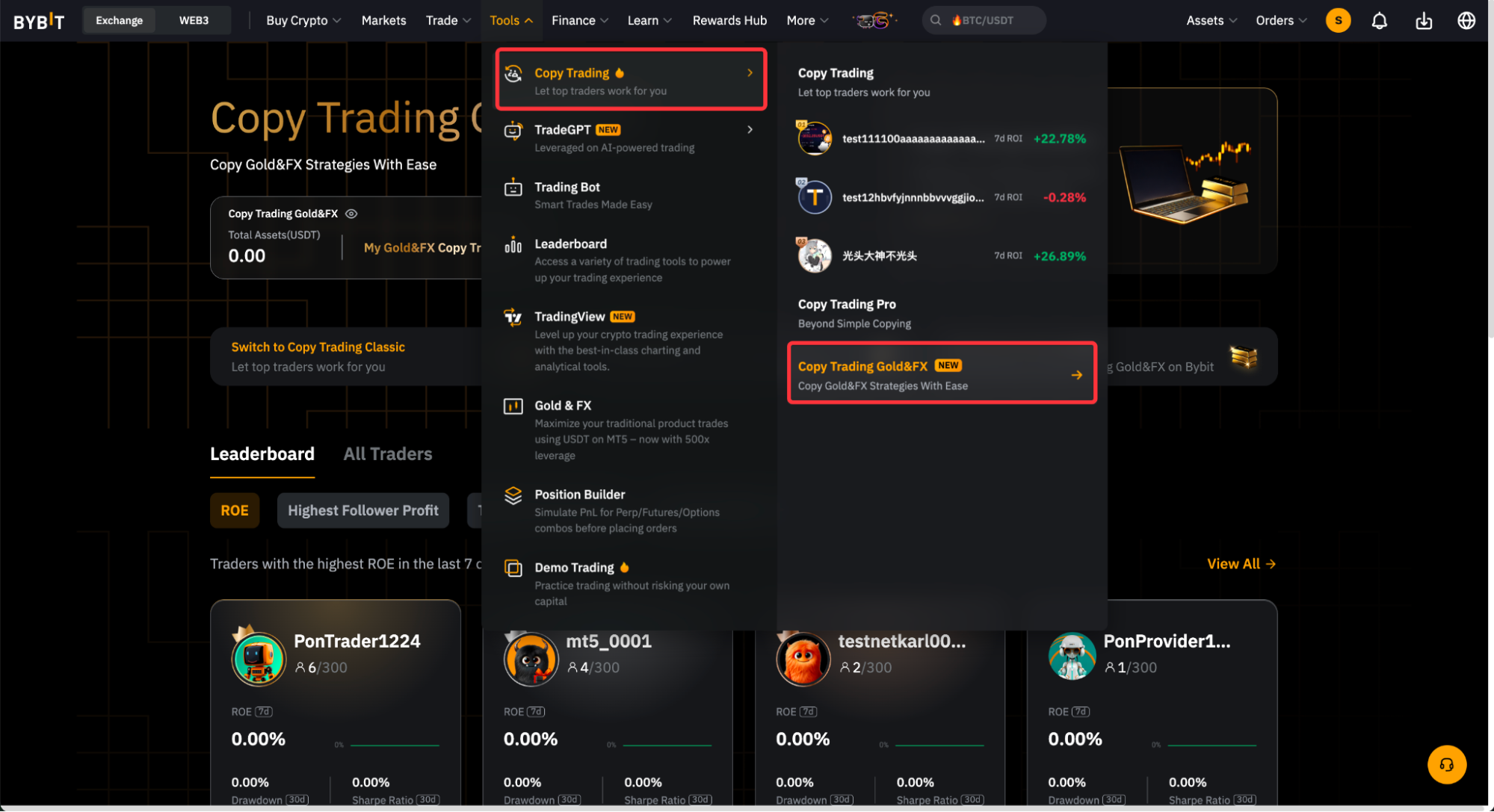 2º passo: Navegue até Ferramentas → Copy Trading → TradFi Copy Trading.