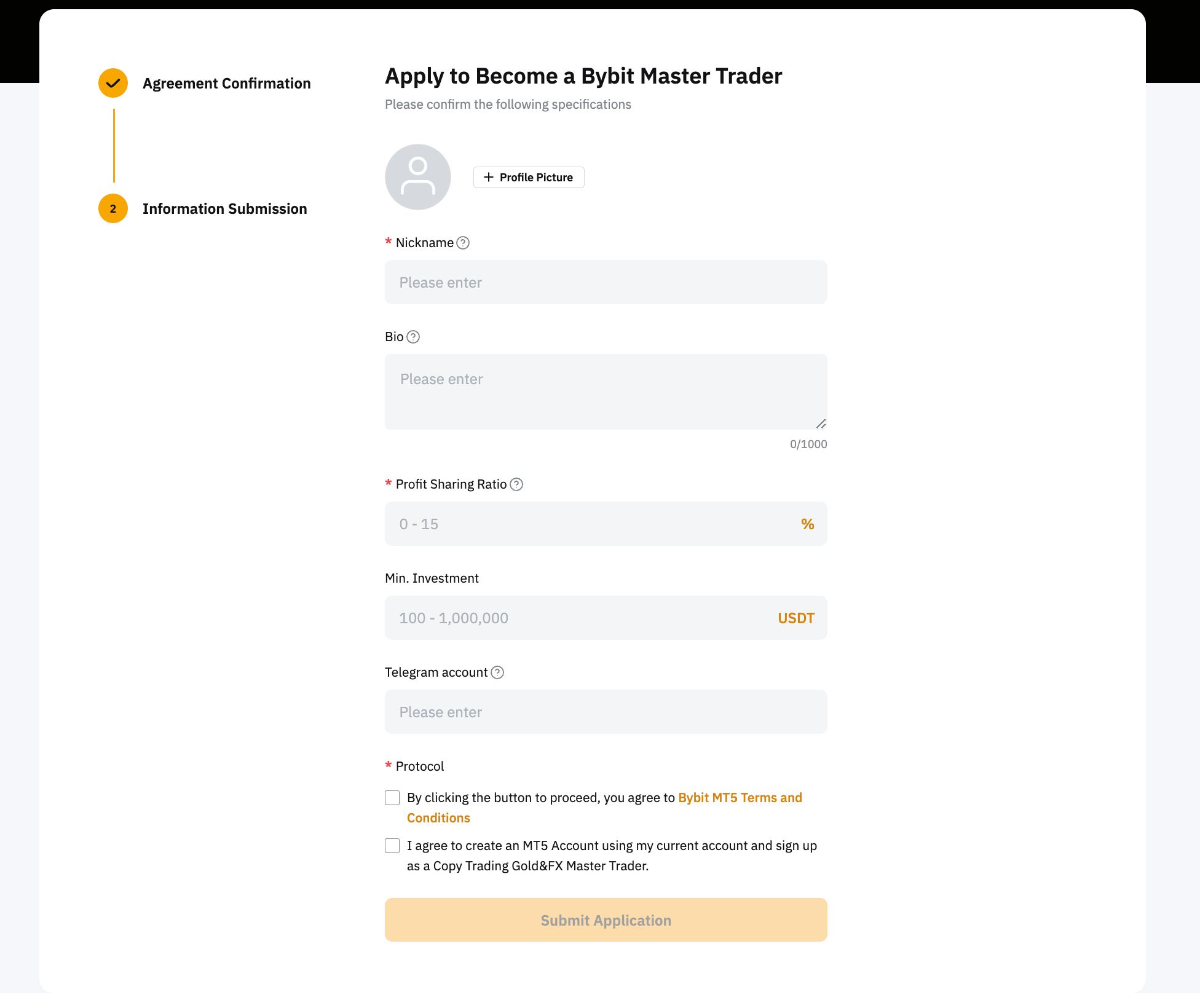 • Seu apelido deve ser único, com um limite de 30 caracteres, e não pode ser usado por outro Master Trader na plataforma de Copy Trading.