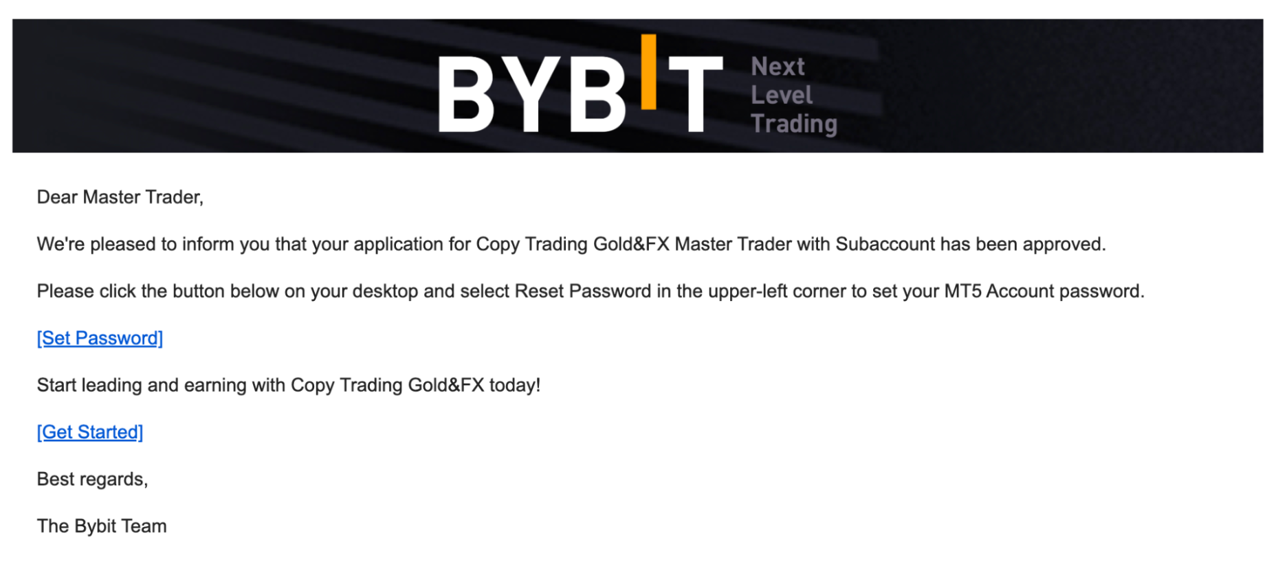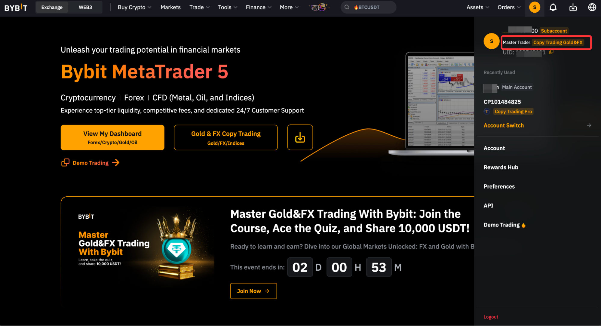 Parabéns! Você agora é um TradFi Master Trader. Alterne para sua Subconta de TradFi Master Trader e Conta MT5 para começar a fazer Copy Trading.