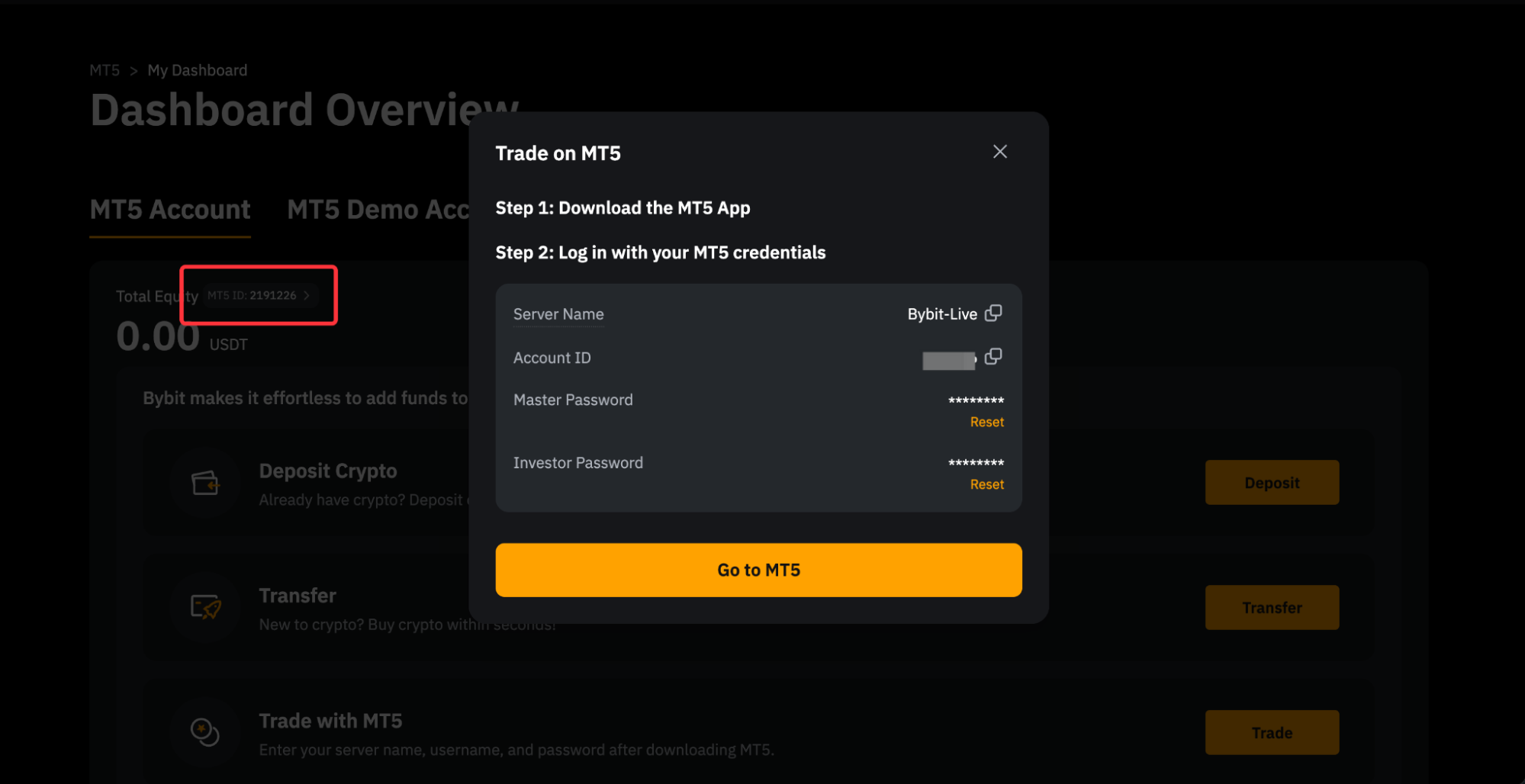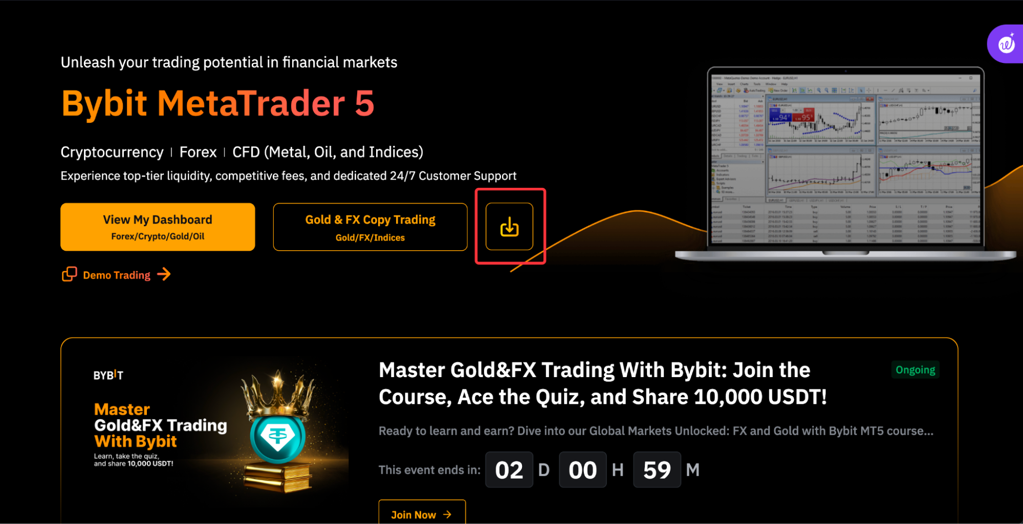 4º passo: Baixe e instale a plataforma MetaTrader5 a partir da página inicial do TradFi MT5 na Bybit.