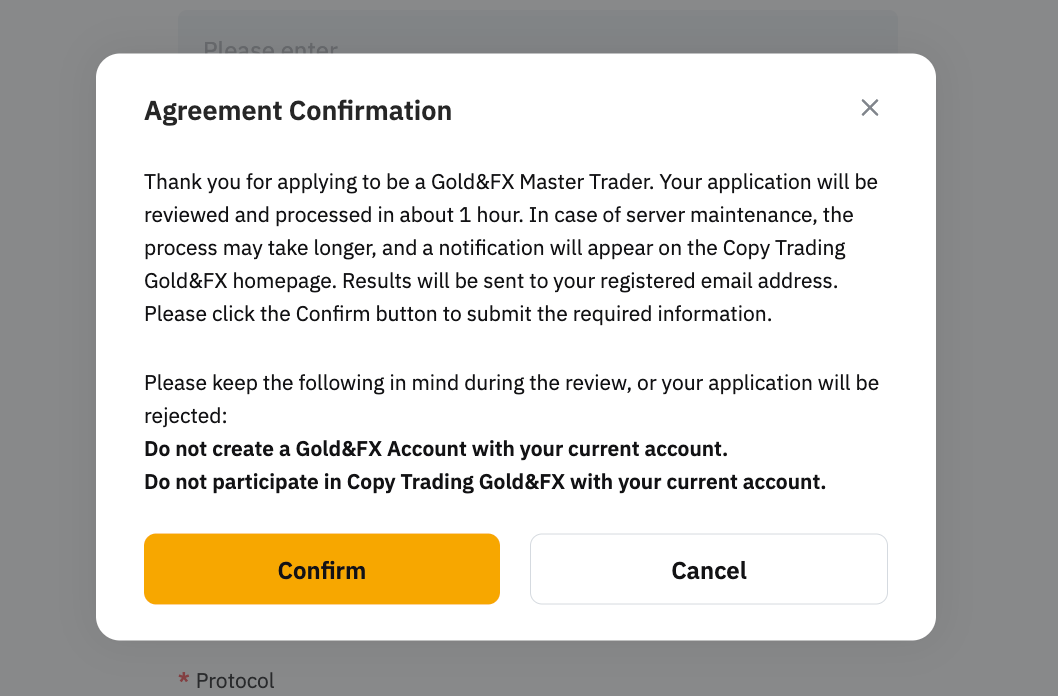 Observação: Evite criar uma Conta TradFi ou seguir outros Master Traders durante o período de análise da candidatura, pois isso pode afetar sua elegibilidade.