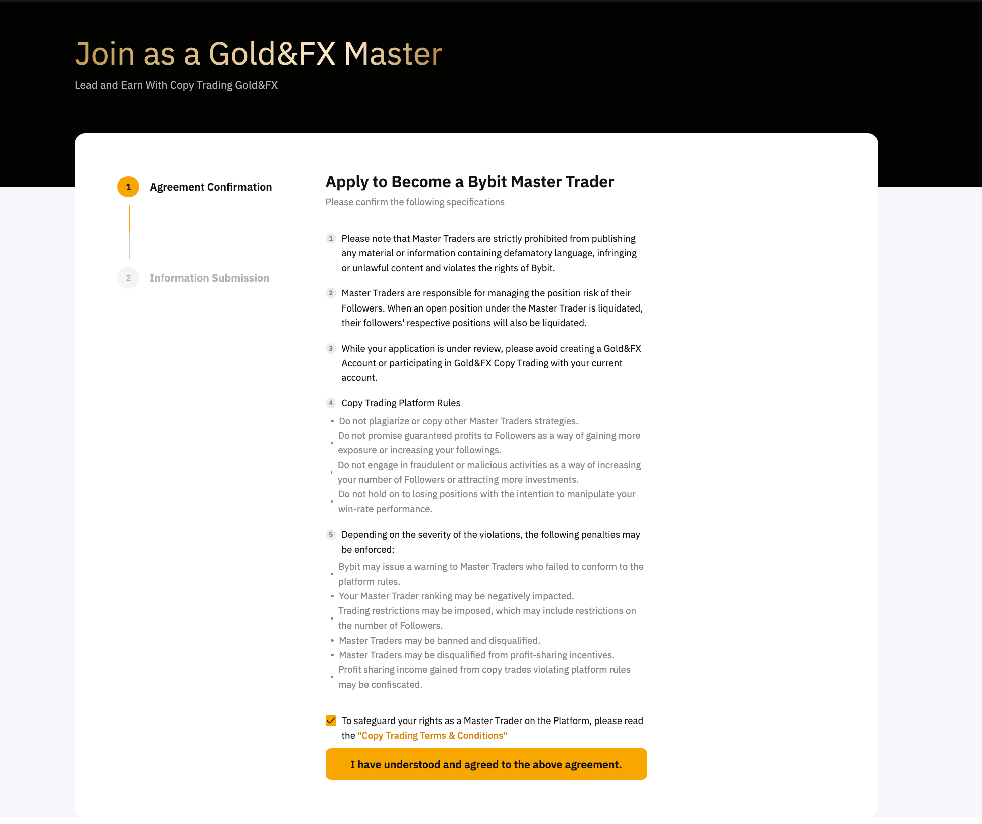 5. Leia o Acordo de Master Trader: Familiarize-se com suas responsabilidades e possíveis infrações antes de se candidatar.