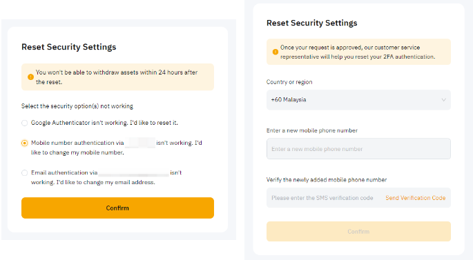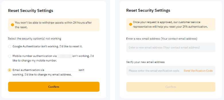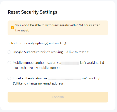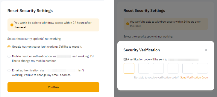 a) Отвязать Google Authenticator: Выберите опцию Google Authenticator не работает. Я хочу сбросить его. Затем введите правильный код подтверждения по электронной почте и/или SMS.