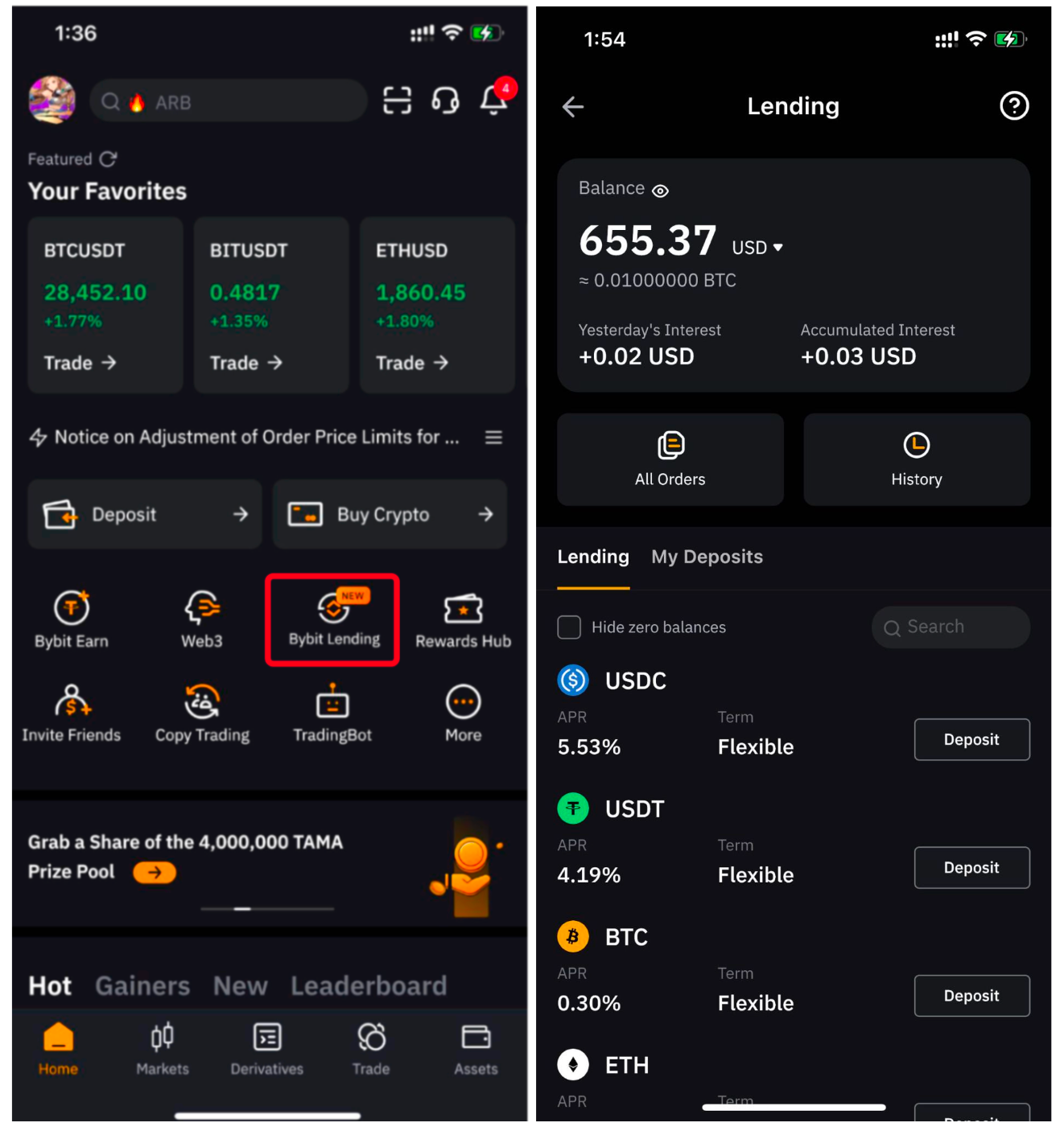 Шаг 1.  Найдите страницу сервиса Bybit Lending