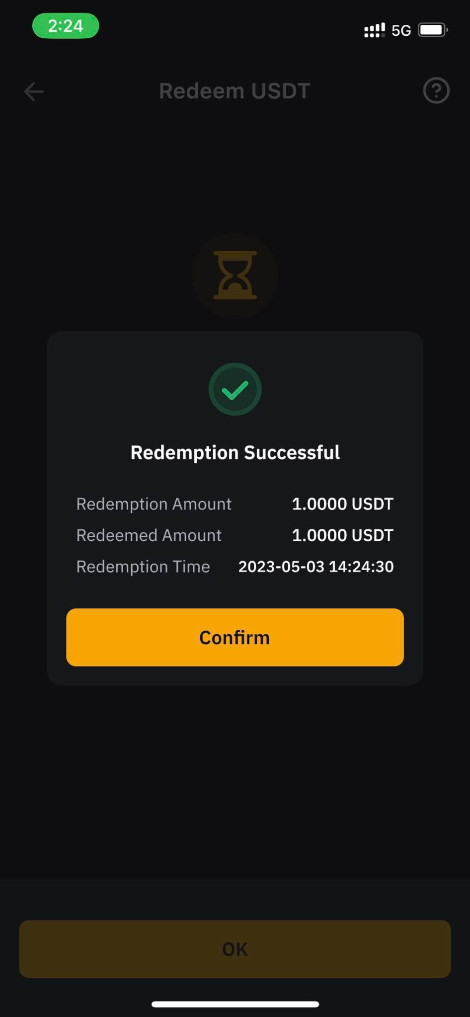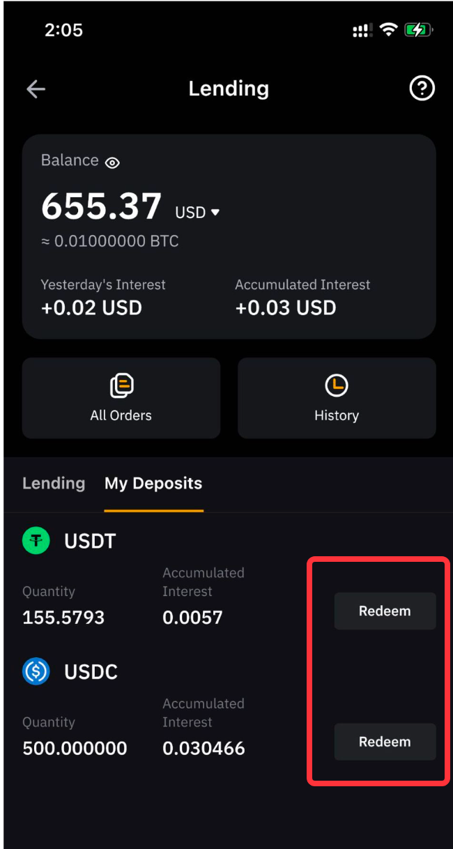 Внесенная сумма и начисленные проценты будут зачислены на Ваш спотовый аккаунт или Единый торговый аккаунт (если Ваш аккаунт был обновлен) после успешного возврата.