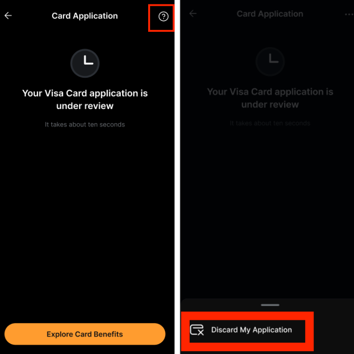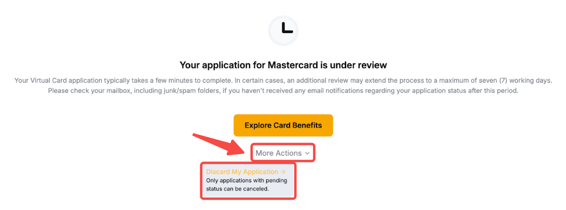 Ви можете скасувати заявку на картку Bybit, натиснувши Переглянути мою заявку → Більше дій та вибравши Скасувати мою заявку на картку.