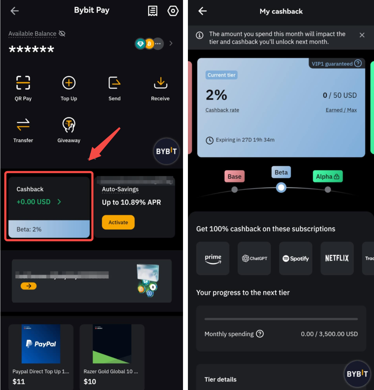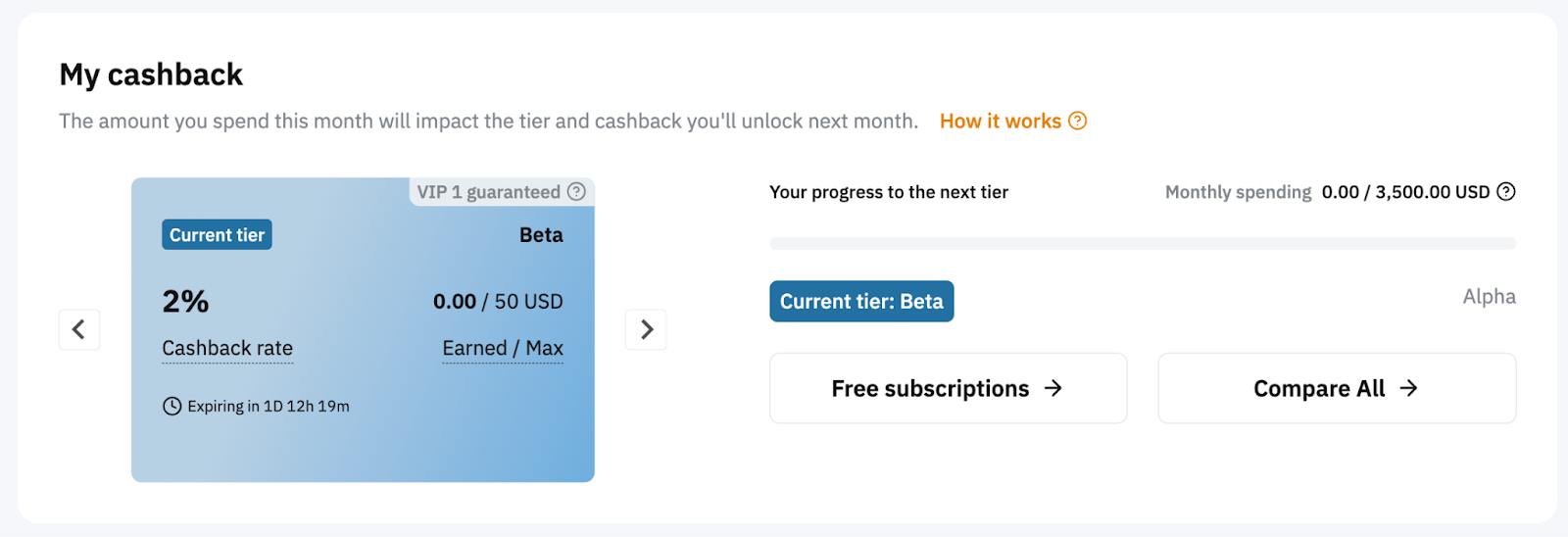 Ваші загальні щомісячні витрати за карткою Bybit і Bybit Pay об’єднуються для визначення рівня та кешбеку.