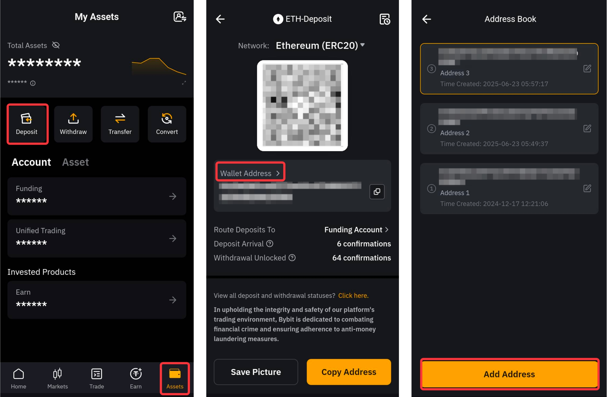 Bybit підтримує лише внесення монет, перелічених на сторінці «Активи» кожного трейдера, та пов’язані із ними стандартні блокчейни.