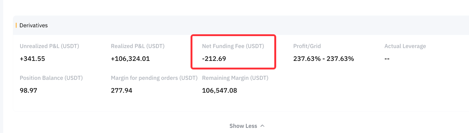 Від'ємна сума комісії означає, що ви отримуєте (заробляєте) комісію за попередній інтервал фінансування. І навпаки, якщо ви бачите позитивну суму, це означає, що ви сплачуєте комісію за фінансування, що призводить до зменшення залишкової маржі вашого бота.