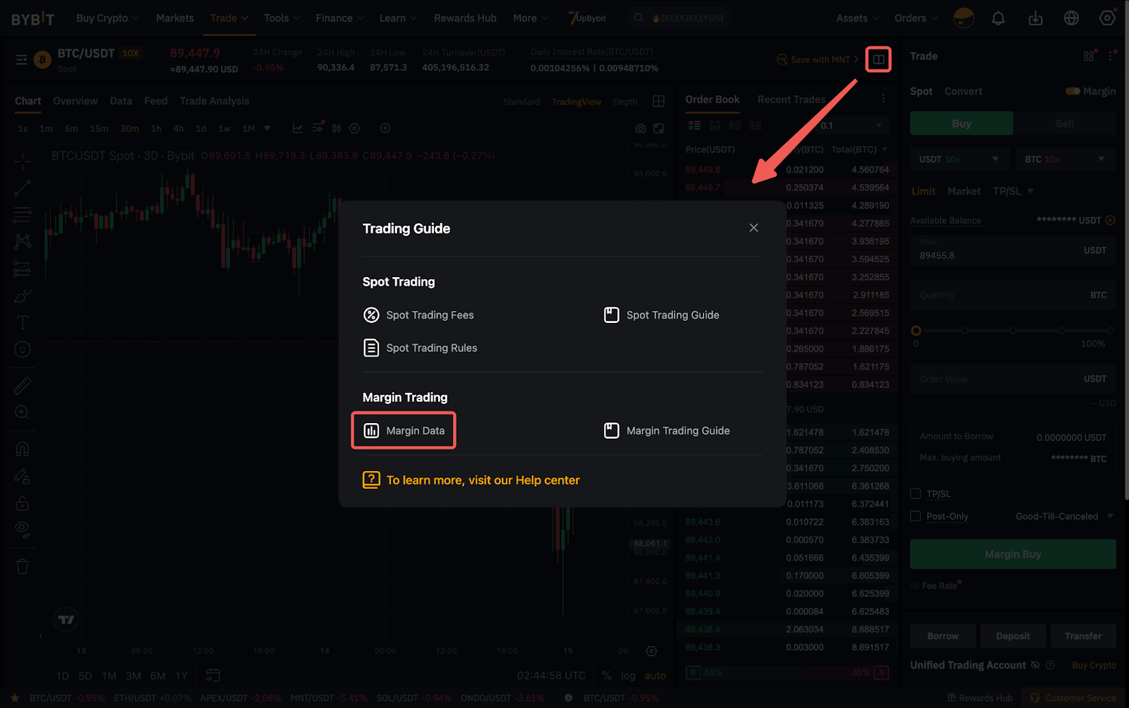 Щоб переглянути останні відсоткові ставки для спотової маржинальної торгівлі, натисніть Торг.посібник Дані про маржу. Ви також можете переглянути відсоткові ставки для різних VIP-рівнів.