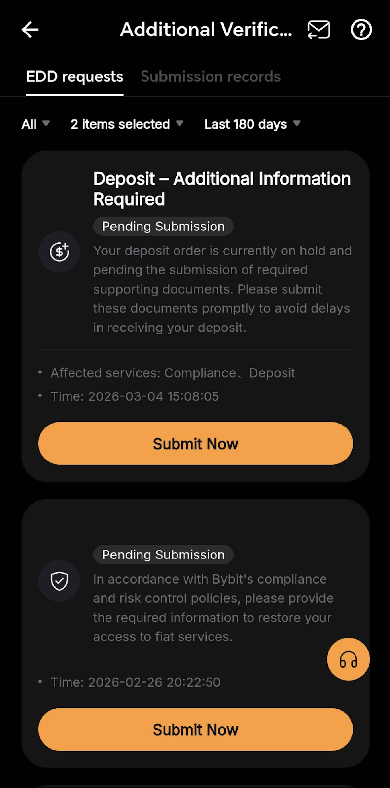 – Наразі запити EDD можна скасувати для депозитів, виведення коштів, міжрегіональних переказів, купівлі або продажу криптовалюти за фіат, заявок на картку Bybit та інших сценаріїв, що підпадають під дію правила Travel Rule.