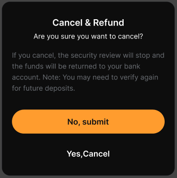 – Ви можете скасувати трансакцію, лише коли її статус EDD — Необхідні дії. Якщо статус — На розгляді або Відхилено, скасування буде недоступним, і вам потрібно буде подати необхідну інформацію для завершення перевірки.
