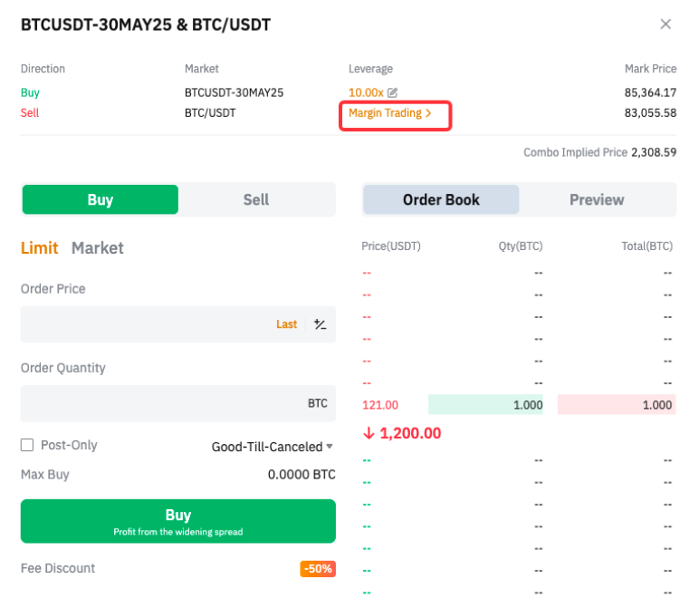 — Якщо йдеться про Спотову торгівлю, кредитне плече можна встановити, лише якщо ввімкнено маржинальну торгівлю. Ви можете увімкнути або вимкнути маржинальну торгівлю із зони Спотових ордерів.