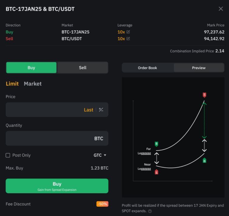 Торгівля спредами на Bybit створює простий спосіб входити в угоди, даючи можливість трейдерам заробляти на спредах лише за кілька кліків. Вона передбачає одночасну купівлю та продаж двох фінансових інструментів, таких як Спотові пари, Безстрокові контракти або Строкові контракти з різними термінами дії для хеджування ризиків та оптимізації потенційних прибутків.