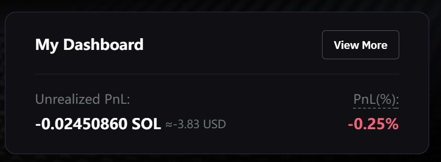 Крім того, перейдіть на Мою інформаційну панель у верхньому правому куті домашньої сторінки маржинального стейкінгу SOL. Тут ви побачите свій нереалізований P&L і P&L (%). Натисніть Переглянути більше, щоб отримати детальну інформацію за ордерами.